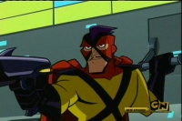 After Batman and Robin defeated Double X, Ecks had no memory of what happened and became truly evil while serving time in prison. He later infiltrated a nuclear test facility, specializing in nuclear fusion and fission theory. Through careful calculation, Ecks deduced that a controlled nuclear meltdown would release supercharged nuclear energy that would enhance his powers ten fold. Batman arrived to intervene. Instead of Ecks, the energy was absorbed by Coach Raymond and Jason Rusch, who were on a field trip at the time. They tracked down the fused being and kidnapped them. Utilizing a special chamber, Ecks posited that he could drain the energy. It worked and Double X began feeding off of Ecks to increase his size and strength. Rusch and Raymond were cured but decided to recombine and defeated the villian by taking back the energy and blasting the clone back into him.