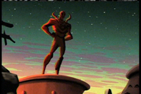 1000's of years ago, the Reach and the Green Lantern Corps were sworn enemies. The Corps finally defeated them but not before they seeded planets with their Scarab technology. The Scarab is a feat of extraterrestrial technology that fuses to the spine and grants its wearer living armor with incredible powers. However, each Scarab was programmed to eventually override the personality of the user and serve the collective of the Reach. The tale of one Scarab began somewhere in the backside of the Milky Way Galaxy. It would save a village of lifeforms called Gibbles from the space pirate, Kanjar-Ro. In return, the Gibbles idolized the Scarab as "The Great One" and erected as statue in its honor. However, the Gibbles witnessed their hero's untimely end as well.