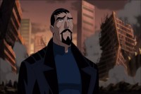 Just as Trevor was about to give the order to fire on the duo, Dr. Luthor boomed between them. He was unable to boom past the Tower's shield but monitored it and learned Will Magnus was the real culprit all along and was planning to link everyone's minds into one with nanites. Superman turned his attention to the shield and pummeled it. Batman, restrained inside, got free and dropped the shield. Superman entered and decked the Batdroid before it could kill Batman. Superman fought the three droids and their battle took to the city then underground into a subway station. The droids merged into one and overwhelmed Superman with its constant teleportation. It bashed him into a building, tossed him into a parking lot, and threw a semi-truck into him. As they locked hands, Superman used his X-Ray vision and saw three government made Mother Boxes inside the droid. He used his heat vision and burned the boxes out. Superman punched the droid so hard that shock waves rocked the area. He flew into the droid and took into deep underground.