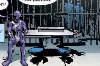 Superman tackled the two guards he held hostage up into the air but Parasite hung on. He released a guard and pulled himself up, then palmed Superman's face. Luckily, Parasite was overwhelmed by the sudden unfiltered input of sound, rapidly shifting overlapping x-ray, telescopic, microscopic, and infrared vision, and building heat energy. Superman grabbed both guards and held tight as they fell back to the ground. Parasite landed on his back and released a heat vision blast in panic. Superman's powers were restored by the sunlight but he cautioned the guards to stay back. Superman planned to keep Parasite's attention on him and trick him into thinking he was still weak. Superman led him on a chase then went for a passing train. He lifted a container off and dumped its scrap metal payload over Parasite. He planned to trap Parasite under the container. To Superman's surprise, Parasite countered with heat vision. It melted the metal into slag and rained over him. Superman froze the slag into a hardened shell and trapped him. With his x-ray vision, Superman confirmed Parasite was still alive. Guards lifted the frozen slag onto a flatbed.