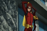Speedy is a former member of the Teen Titans and a highly skilled archer. While Robin drove the team through the city, Speedy asked when he could drive the car. Robin stated it was his, so never. Speedy was the first to notice a portal in the sky and aliens fighting each other. The Titans observed the battle. Speedy remarked it was becoming a big week for them, alluding to their victory over the Fearsome Five and now an alien brawl to break up. They watched as the lone girl was knocked down to the street. Speedy asked which side they should join. Bumblebee was annoyed with him. Speedy retorted appearances could be deceiving. They chose the girl. Speedy fired a zip line and perched on a building ledge then fired exploding arrows at the Gordanians. They returned fire. Speedy fired an arrow that released multiple explosives. With the girl's prompting, Robin hailed Speedy on comms and asked if he had anything to close the portal. Speedy screwed a device onto an arrow then fired it straight into the portal.