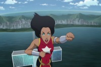 After the Teen Titans defeated Brother Blood, Wonder Girl joined the team. Starfire preferred to keep the news private but rumors began to circulate. During a guest appearance on Kevin Smith's podcast, Smith asked Beast Boy, despite knowing not to ask, about the new girl on their team. Beast Boy only commented she was a "wonderful" addition to the team and insisted Starfire would kill him if he said anything else. Smith was sure there was no way Starfire was listening to the podcast and joked she was brushing her hair. Beast Boy stated his lips were sealed then turned into a seal. Smith asked if she was a replacement for Terra. Beast Boy became less talkative. Smith realized it was too soon and rescinded the question but Beast Boy decided to make a statement about Terra. While Raven presented a puppy to Robin atop the Titans Tower, Wonder Girl flew above them. She faltered at first but continued onward, enjoying the moment.