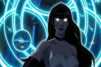 Constantine instructed her to get control just like he taught her. Zatanna regained her composure and sobbed. The swords all dissipated. She dropped to her knees and held onto Constantine. Constantine consoled her that even the best of them lost control. He cited himself. Batman walked Faust over. He had no clue why they attacked him nor what artifact they were talking about. Blood pointed out Faust had the power to summon the Demons Three whenever he wanted in order to get the Dreamstone in theory. Batman believed Simpson was the real threat all along and used Faust as a patsy. Simpson found the rest of the Dreamstone in the House and powered up on it. Destiny took control of him and rematerialized then blew up the House. Zatanna drew up a force shield around them but collapsed from the effort. Constantine realized she used too much magic and might die. He brought out a necklace and incanted. Zatanna was enveloped in a yellow dome. The others proceeded into D.C. to face Destiny. Zatanna recovered and teleported to Batman just in time.