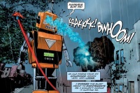 Hearing the police approaching them, Superman led the Blastfyre to Centennial Park since it would be empty due to the time of the week and from the weather. Superman froze some rain puddles and tried to knock Blastfyre on its back but its core auto-gyro kept it upright. No longer moving, Blastfyre's internal power built up again and fired. Superman decided to take a page from Bessie's playbook. He grabbed it by a leg, lifted it into the air, and dropped it on its head. Blastfyre's head cracked open. He discovered Toymaster inside, tangled in the wires and circuits, that made up the robot's brain. Toymaster realized he was a robot built by his father to get revenge on Bruno Mannheim.
