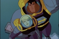 Years later, some time during the expansion into the Justice League Unlimited, a fourth suit was created. Creator unknown, it acts as a space suit that allows Superman more freedom of movement and vision while still supplying him with oxygen. It is also closer to the color motif of his original costume, blue with the family crest on the chest. He used it in the mission to distract A.M.A.Z.O. while Lex Luthor was taken by Steel and Supergirl to a safe location.