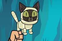 Berto Jelenic tried to befriend a stray cat named Zoli but it did not stay in his back yard. He tried to win it over with a dish of food but it ran away when it was done eating. Jelenic kept trying. After a year, Zoli was hit by a car and put in a body cast. It couldn't get away and was adopted by Jelenic. While in Aqua Jail, Jelenic told the story to Aqualad and presented Zoli, still in a cast, then dropped it on its head. Aqualad eventually understood he could win Raven's heart with shrimps and prime rib.