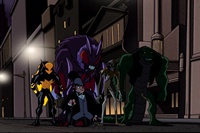 After watching his favorite heist movie, the Penguin was inspired to assemble a team of Gotham's greatest villains to kill the Batman. Undaunted by the disinterest of the Joker, Bane, and Mr. Freeze, the Penguin finalized the team with Firefly, Killer Croc, and Ragdoll. Based in the abandoned Gotham Academy, the team was approached by third rate criminal, Killer Moth. They mocked Moth and decided to use him as a driver and gofer. After apparently killing the Batman in an explosion, the Penguin turned his sights on a ruby-encrusted penguin, much to the disgust of the team, kept in a laser proof five layer titanium vault by software billionaire, Robert Howard. The crux of the plan was a stolen highly unstable chemical that was a universal solvent at room temperature. However, it mutated Killer Moth into a monster and the Batman survived and confronted the team with Batgirl and Robin. After their defeat and arrest, the team disbanded for good.