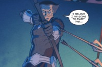At some point, Green Arrow "stumbled" onto Merlyn's stage and "horned" in on his act. On September 29th, Team Year Zero, Oliver Queen recognized Merlyn outside the Star City International Airport and changed into Green Arrow. After Joe Henchy, Piotor Platz, and Johann Mintz's initial attempt to assassinate Queen Perdita Vladek failed, Mintz hailed Merlyn on comms to inform him it was is turn to try. Merlyn perched atop the terminal roof and fired two arrows as soon as Green Arrow stood up from behind a baggage car on the tarmac. One went through a shoulder, the other through a leg. Merlyn believed he was going to enjoy himself. He blew up the car with a flaming arrow to the hood. Arrow and Vladek landed on a conveyor belt leading to baggage claim inside. Merlyn went to his comms and asked the development be reported to the client, Count Vertigo.