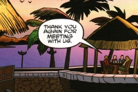 On August 13th, at 19:06 Hawaiian Standard Time (HST), Kaldur'ahm and Artemis Crock had a meeting with Randy and Peggy Eiling, the children of Captain Nathaniel Adams. It became rather clear that one believed Adams innocent and the other, guilty. After the meeting, Kaldur and Crock took a walk on the beach where Kaldur confided he was thinking about his parents and Atlantis. On August 14th, 09:16 HST, Crock and Kaldur'ahm met up with Peggy and Randy Eiling again to tell them the truth about their birth father. General Eiling and Captain Atom were waiting not far away to do the same.