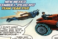 On December 1st, 09:00 Mountain Standard Time (MST), Alpha Squad (comprised of Nightwing, Wonder Girl, and Super-Cycle) and Blue Beetle entered the state of New Mexico on route to Taos.