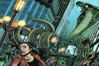 The Nicollet Mall is an upscale shopping and dining area in downtown Minneapolis. On the evening of September 12th, a giant cobra attacked part of the mall near the iconic Mary Tyler Moore statue.