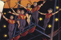 The Flying Graysons were once the star attraction of Haly's Cirus. John, Mary, their son Richard (nicknamed Dick), Dick's Uncle Richard (nicknamed Rick), and Aunt Karla, and Dick's cousin John performed death defying acrobatic stunts during their high flying trapeze act. The signature move of the Graysons was in the finale, the one that made them famous. It was performing without the safety net. Due to the danger of the act and his age, Dick Grayson was restricted from joining in it. During a performance in Gotham City, the high wire snapped due to being sabotaged by a crime boss named Zucco. As a result, the Graysons fell to their deaths. Dick's Uncle Rick survived but was paralyzed for the rest of his life. Dick Grayson was adopted by Bruce Wayne as his ward.