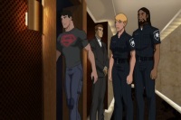 Brinke thought she was kidding and stated Logan needed to get to a hospital. Morse stated he was her brother and she knew what he needed. Superboy lifted Brinke and Reynolds off the ground and walked them outside the hotel room. Brinke demanded they be put down. Superboy thanked them for their service but insisted they had the situation handled and promised to return the gurney later then shut the door.