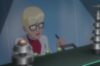 Dr. Harleen Quinzel was Hugo Strange's assistant. On the night of the Evil Extractor demonstration at the Gotham State Penitentiary's Top Secret Prison Lab, Quinzel blushed after the Joker winked at her. After the super criminals were all strapped into their seats, Quinzel gave a wink back to Joker. Strange directed her to instigate the extractor protocol. Quinzel decompressed the cerebral defibrillator and pushed a lever up on the console. On Strange's call, she adjusted the hemostatic stabilizers then pushed up the field discharge switch. Strange realized the super criminals were trying to overwhelm the machine with their evil and yelled at Quinzel to shut down the Evil Extractor. Quinzel pushed the discharge switch and the Extractor powered down but the alarm kept blaring. District Attorney Harvey Dent was doused with Evil Essence that leaked out of the Extractor's Collection Vent and transformed into a new super criminal named Two-Face. Quinzel remarked it looked like that smarted. Strange was fired soon after.