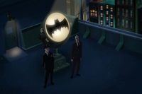 The Bat-Signal is a form of communication used between Police Commissioner Gordon and Batman when there's a case that warrant his help. After the Joker, Penguin, Riddler, and Catwoman crashed an episode of Gotham Palace, Alfred Pennyworth informed Bruce Wayne and Dick Grayson of the Bat-Signal outside in the night sky. Grayson's aunt Harriet Cooper suspected they were Batman and Robin but Wayne informed her they were just running off to go night fishing. Likewise, during Harriet Cooper's birthday party, the Bat-Signal was shown again. This time, Wayne and Grayson claimed they were going skeet shooting.