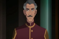 After King Tut's hapless alter-ego Professor McElroy was sentenced to 15 years with the possibility of parole for good behavior, Wayne had his friend and assistant to the assistant District Attorney Harvey Dent over for drinks. Pennyworth alerted Wayne of the Bat-phone on the sly. Wayne excused himself and Grayson for their weekly badminton lesson. Cooper took Pennyworth's tray and offered Pigs in a blanket to Dent. Later on, Pennyworth went to the Batcave at the tail end of a heated argument between Batman and Robin over Dent's possible role in the return of Two-Face. He tried to break things up but Batman grounded Robin. He stormed off to the Batpoles. Batman told Pennyworth to let him go because Two-Face had them all on edge and Robin just needed some fresh air. He mused he did, too, and got in the Batmobile. Batman paused, prompting Pennyworth to inquire if there was anything else. Batman revealed he was supposted to see Catwoman but he didn't want to lose focus because a man's good name was at stake. Pennyworth replied "Friends before females" to which Batman agreed.