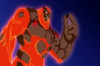 Clayface mutated himself once more with Monster Venom and chased after Robin, who was on the BatATV, through the mountains in the form of a lava flow. The ATV's pulse cannon blasts did nothing to stop Clayface. Eventually, he caught up to Robin and rose up in his fingertips. Clayface then tossed him into the air with intention of eating him. The Bat Mech fired a gauntlet and sent Robin to safety then launched four freeze missiles from its rib cage but Clayface formed holes in his body to avoid them. Clayface went on the offensive. Bat Mech tried a right punch but its arm got stuck in Clayface's chest. Clayface decked the Mech so hard it fell to the ground and lost its arm. Robin caught up and Bat Mech launched one more missile. Clayface caught it and Robin opened fire on the missile. It was activated and Clayface was frozen.