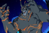 Clayface was one of the supervillains freed from Arkham Asylum by Penguin and Mr. Freeze. His mud was combined with Bane's Venom and Chemo's sludge to create a new Monster Venom that could turn suitable subjects into giants. Clayface and Bane injected themselves with Monster Venom after Penguin betrayed Mr. Freeze. Freeze promised Penguin he wasn't going to get away with it. Clayface picked up Freeze and threw him across the city. He complied with Penguin's orders and searched for Batman. He found Batman and Robin observing the battle between Bane and Killer Croc. Robin saw him and tackled Batman out of the way. Suddenly, Clayface's unstable makeup reacted to the venom. Clayface gained the ability to mimic lava. Batman entrusted Robin with the Batmobile and tasked him with distracting Clayface while he went to deploy the Bat Mech. Robin switched the Batmobile into the Batplane and fired upon Clayface. He reformed and knocked the plane to the ground. Robin managed to shift it back to the Batmobile.