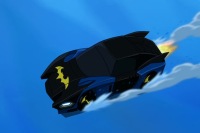 Dr. Langstrom added modifications to the newest Batmobile. It could swap parts on the run with the Batplane through its touch screen. The Batmobile could borrow the Batplane's thrusters or wings or could lend its blasters to the Batplane. With both the thrusters and wings, the Batmobile can take flight.