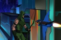Batman flew the Batplane in the battle against Mr. Freeze after he froze the city. He fired two missiles into the Freeze-Mech's chest but Freeze angrily blasted the plane's engines. Batman joined the plane's parts with the Batmobile, driven by Nightwing, and jumped in. Together, they took down Freeze. In the Batplane, Nightwing opened an attack on giant Bane and Killer Croc as they assaulted Arkham Asylum. While the Bat Mech and Arrow Mech handled them, the Batplane cut off Joker, Penguin, and Scarecrow's escape and recaptured them with a net.