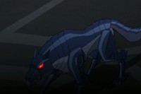 With the force field transmitter set, the wolf punched a hole in the ceiling with tendrils shot out from its mouth and ran across the roof. As it leaped across to another building, Batman severed its tendril and it landed on a car. The wolf jumped onto the other side of the highway and forced a big rig truck to overturn. While Batman was distracted, it escaped. The Blade Wolf was part of the line up previewed at Penguin's grand opening gala at the penthouse of the Aviary.