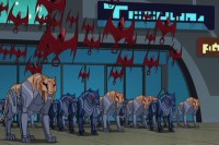 The Cyber-Animals are a line of unmanned robotics produced by Bumbershoot Mechanics with the intent to conduct exploration and retrieval missions, the preservation and restoration of the natural world. Envisioned by the Penguin as mankind's ecological salvation, a means to right the wrongs brought upon the environment and restore a harmonious balance with nature. Inspired by mother nature's perfect designs, each Cyber-Animal takes a cue from a specific mammal. The Blade Wolf was devised for retrieval missions like digged into collapsed mines and saving trapped miners. The Tiger Claw could handle oil refinery fires. The Fire Bat could save animals from being illegally hunted. The three models were engineered by zoologist Dr. Kirk Langstrom. The three Cyber-Animals were secretly used to help the Animilitia spread 12 force field transmitters around the Aviary and if necessary, provide back up. The Penguin debuted the Cyber-Animals at the grand opening gala of the Aviary and promised there were more to come.