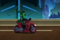 The Redbird is Red Robin's motorcyle. He took it to the Gotham Zoo to join the fight against the Animilitia. Red Robin later drove the Redbird, with Green Arrow hitching a ride, and provided support for the Batmobile against the Cyber-Animals. However, after Green Arrow shot an exploding arrow at Fire Bat, the Fire Bat destroyed the Redbird with its laser attack.