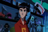 Red Robin gave Shoto a set of instructions to meet him at a specific time and place then gave him a hoverboard to use. They later met up. Red Robin blindfolded Shoto then took him to the Batcave. With little time to bask in its awe, Shoto went to the Batcomputer. He went to work building an interface to physically hack the artificial intelligence stolen to deliver Joker's virus. He also gave Batman a virtual reality mask fashioned as a domino mask so he could enter the artificial intelligence world. Batman succeeded but the Joker had a second transmitter. With less than three minutes left, Batman contacted Shoto. Shoto speculated Joker would need a boosted quantum computer to transmit the virus. Batman realized Cyborg was the transmitter. Cyborg found the stolen Inca Rose Stone was embedded inside his left arm. Shoto dissuaded him from simply removing the stone and risk triggering the virus. He advised Cyborg to connect the stone to the central core of Joker's battlesuit in order to inititate a feedback that would safely shut everything down.