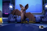 Meet the Batwheels: In the Batcave, Bam met one of the resident bats and named him Alfie. Batcomputer alerted Bam about Ducky stealing a shipment of rare tropical fish at the Gotham Docks. Bam tried to sneak up on him but Alfie the bat stowed away inside and startled him. Ducky fired his taser umbrellas at Bam but Alfie flew into Ducky's face. He drove up a plank right into a tank filled with water. One night while trying to recharge, Bam was awoken by Buff. Buff revealed Alfie was hanging upside down on his grill. He thought it was cute but he couldn't use his winch. Bam suggested teaching him to fetch. Alfie flew off, grabbed an oil can, and dropped it on Buff. After the others helped Bam to his garage, they watched him sleep. Alfie dropped an oil can on him.