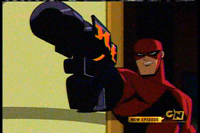 Dyna-Mite is the evil version of the Atom on Earth 3. He is a close ally of Owlman and Blue Bowman. When Bowman began to suspect Owlman was compromised, he emlisted Dyna-Mite to spy on Owlman. Soon enough, Dyna-Mite discovered Owlman was Batman and attempted to stop him from freeing Red Hood. Batman escaped and proceeded to the prison area. In the final battle, Dyna-Mite joined his comrades to fight the heroes.