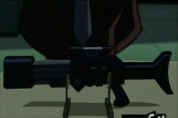 The Sonic Disrupter is a gun that emits a sound-generated pulse that splinters anything it is aimed at. It was recently up for sale by Joe Chill in Gotham City. Poison Ivy made an initial bid of $10,000 and the Two-Face was about to counter at $15,000 when Batman arrived in search of Chill. After the villains turned on Chill, the Joker grabbed the Disrupter and wrestled control of it with Batman. The Disrupter went off and caused the building's roof to collapse.