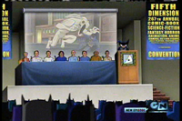 The Fifth Dimension is an inter-dimensional reality that exists outside of the traditional space-time continuum. With five dimensional properties, it acts on its own separate set of physics. More importantly, this dimension is home to a race of omnipotent beings who can be classified as imps in the third dimension. The three most famous of these beings are Mr. Mxyzptlk, Yz the Thunderbolt, and Bat-Mite. In the Fifth Dimension, Bat-Mite erected a shrine to what he thought was the greatest rivalry, Batman and Joker. There are various replicas of Joker objects like the Jokermobile, portraits, and displays of various cases such as the time Joker made his own utility belt, the Laughing Fish, and the Death in the Family. Bat-Mite also built a Bat Trophy Room dedicated to every form and incarnation of Batman, aided by Bat-Mite's power to observe any parallel universe he wishes.