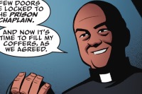 Justus Meadows is a reverend who serves as the prison chaplain at Stonegate Penitentiary. He found The Muscle to be a challenging soul but after almost daily meetings, Meadows believed a great redemption awaited him. While observing Muscle being offered a plea deal, Meadows found Batman's prediction about the deal being rejected out of pride to be unfair. Batman advised Meadows to stand back when that explosion hits. Meadows wondered why he even bothered to save the Muscle's life. Gordon called it his curse. Muscle later met with Meadows in the chapel and asked if he thought Montoya was on the level. He noted he tried to kill Montoya and her girlfriend yet she was still willing to speak up for him. Meadows told him that was what forgiveness was and it was a powerful tool that allowed people to get on with their lives. He asked Muscle if he was ready to move on with his. Muscle pondered it but emphasized he would need his help if he did. Meadows promised he would do anything he asked.