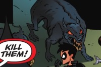 Batman, Robin, Talia al Ghul, and Catwoman battled the lead Talon in an abandoned subway at Riverside. Batman demanded to know why the Court of Owls returned and why the Talons kidnapped Catwoman and Man-Bat. The Talon called them two insignificant menaces and teased the Owls' wingspan spreads far beyond Gotham. He noted their undying legions had expanded since they last fought. They were surrounded by zombie dogs. Talon ordered the dogs to kill them. Talia beheaded at least two and the others fought back but the zombie dogs kept coming. Batman cast a net over several then readied a red Batarang. Robin urged Talia and Catwoman to brace themselves. Batman threw the Batarang into a wall near the dogs. It exploded and the Gotham River rushed in and swept the dogs away.