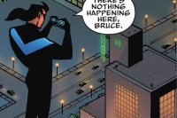 Unbeknowst to Nightwing, Deadman possessed Batman to write him a note. Nightwing thought he simply cut out for a minute. Nightwing and Robin later returned to the Batcave. Deadman possessed Pennyworth so he could greet Nightwing properly. Hamilton Hill Junior was perplexed by the increasing popularity of his political opponent Emerson Mayfield and called Dick Grayson, his old pledge brother, to his office. Grayson already deduced he wanted something. Junior was still confident he would win the election and become mayor officially but wanted some insurance, namely an endorsement from Bruce Wayne. Grayson cautioned him Wayne didn't do endorsements. Junior didn't see a problem since he already got a campaign donation from him and Grayson was his son. Grayson clarified he was his ward. Junior didn't want to split hairs and asked him again. Nightwing asked. Batman said no. Nightwing was satisfied but was still curious. Batman stated he wasn't going to turn Bruce Wayne into a kingmaker.