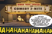 After Straightman broke Joker out of Arkham Asylum, he wanted to announce his return on a grand scale. They occupied the Simon Trent Theater and killed the ventriloquists set to perform at a comedy event. Straightman relived a part of his past in a dream and accidentally walked through a wall into the dressing room used by Joker. Joker joked he was not changing a word in the script. Straightman told him he was having another crazy dream. Joker instructed him to focus on their routine and powdered him. The audience was restrained to their seats and exposed to Joker Toxin in gas form. Joker posed as a ventriloquist and Straightman as the dummy and they performed. Joker noted he heard no applause then remembered the wristbands. He retorted they could have stomped their feet then asked if they were expecting something like The Music Man. He produced a tommy gun but Batman swung in and drop kicked him. He used Joker's acid squirting flower but Straightman did not flinch when it touched his arm. Batman cuffed Joker then tried to punch Straightman out in vain.