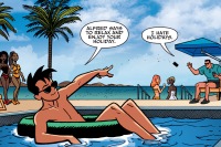 The Wayne Enterprises Board voted to diversify its holdings. Bruce Wayne signed the contracts. One of the acquisitions was a Caribbean island resort. After four months of no criminal activity, Bruce Wayne and Tim Drake went to the resort for some "family time" on Alfred Pennyworth's suggestion. Drake had no issue with kicking back but Wayne hated it. While Drake checked in with Pennyworth over the phone, Wayne replayed news footage of their last night on the town during the Man-Bat rampage. Drake admitted he wasn't holding his breath the cure would finally take with Dr. Langstrom then he tossed his phone to Wayne, telling him Pennyworth says to relax and enjoy his holiday. Wayne replied he hated holidays. Drake thought that was hard to believe for a guy who owned the place. Wayne explained how it came to. Drake suggested hitting the beach and windsurfing. Wayne passed and surmised he would go to the gym. Drake pitched playing playboy and charming one of the women checking him out all week. He assured him once there was trouble at home, they would return right away.