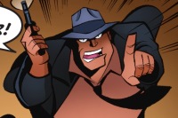 Detective Bullock and Montoya interrogated Jazzman after he was recaptured by Batgirl and Batman. Bullock refused to let him walk for his files on Black Mask. Batman noticed he was trying to cover up the tattoo on his neck and slammed his head on the table. They discovered a microdot embedded on his neck and realized he was carrying the files in plain sight the whole time. Bullock ordered an officer, unaware she was really Huntress, to escort Jazzman to a cell while he awaited transfer back to Stonegate Penitentiary. Bullock took part in a takedown of a drug lab in the old Gotham Steel Yard. Montoya, the lead, went over the plan with the officers and made sure Bullock knew his part was to come in from the west side of the building. Luckily, before the Muscle could take out Montoya, Bullock spotted him. He opened fire and yelled out there was a shooter. At a ceremony awarding Montoya with a commendation for the bust, Bullock helped himself to an entire cake much to the annoyance of a caterer.