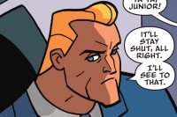 On Election Day morning, Junior trying calling in vain then went to Wayne Manor and refused to leave until Bruce Wayne saw him. He was livid about Wayne's endorsement of Emerson Mayfield. Wayne downplayed it and claimed he was just being polite. Junior presented that day's Gotham Globe and pointed to the headline of "Mayfield's Man." Wayne asked him what he could do since people were already voting. Junior asked him to endorse him at a press conference and revealed he already notified the press then pointed out he was neck-and-neck with Mayfield thanks to him. Tim Drake interrupted them and announced there was something on TV they needed to see. Barbara Gordon told Summer Gleeson, in an interview, that she was recruited by Junior to infiltrate and sabotage Mayfield's campaign. She added Mayfield was a kind and generous man while Junior was out for himself and power then claimed Junior had her steal from the police department's classified files. Junior was naturally shocked. He told Wayne he hardly knew the girl and all of what she said was a lie.