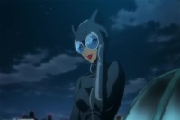 Catwoman broke up one of Leviathan's human trafficking cells and liberated several women in Sochi. She started going on a tear across Europe stealing jewels to finance a new life for these women, including one named Anya. She arrived in Spain and infiltrated a costume party at a manor. Dressed in a classic Catwoman costume, she flirted with Black Mask. Unaware she was the real Catwoman, Mask was instantly charmed and took her inside with him. He excused himself to conduct business with Lady Barbara Minerva. After socializing with guests, Catwoman slipped away and put on her real costume then scaled the exterior upstairs. She avoided a guard and found Minerva's vault. Using her hearing and going by feel, she opened the vault then used powder in a compact to reveal the security laser grid around the Cat's Eye Emerald. Utilizing the pipes in the overhead ceiling, Catwoman used her acrobatic skills and momentum to dive through the grid without tripping any of the lasers.