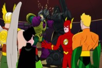Heroes: The Super Friends (Flash, Aquaman, Wonder Woman, Hawkman, Superman, Green Lantern, and Cyborg), Batman, and Robin
