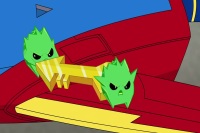 Several green Kryptomites removed the Gold Key from Supergirl's rocket ship in the Mechanics, Robotics, and Automotive Workshop. Poison Ivy sent a vine to them and gassed the creatures before they could get away.