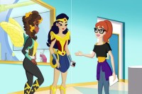 Students: Hawk, Dove, Thunder, Arrowette, Jinx, Elasti-Girl, Lightning, Fire, Lady Shiva, The Ray, Guardian, Scorch, Dr. Light, Cyborg, Catwoman, Katana, Killer Frost, Adam Strange, Vibe, Starfire, Animal Man, Darkfire, Flash, Cheetah, Miss Martian, Bunker, Blue Beetle, Black Orchid, Psimon, Mammoth, Hawkgirl, Poison Ivy, Star Sapphire, Bumblebee, Hal Jordan, Wonder Woman, Shazam, Ravager, Beast Boy, Riddler, Batgirl, and Harley Quinn