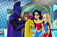 Students: Psimon, Jinx, Scorch, Batgirl, Wonder Woman, Supergirl, Star Sapphire, Harley Quinn, Bumblebee, Flash, Cyborg, Beast Boy, Frost, Catwoman, Hal Jordan, Poison Ivy, and Starfire