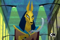 Bumblebee fired on him in vain and got swatted away. Hath-Set demanded to know where Chay-Ara was so he could destroy her, too. Hawkman stated they didn't even go on their first date yet. Hath-Set was stunned and realized he was early and the pair had not yet fallen into a love that surpassed death. Hawkman confirmed. Hath-Set couldn't believe it and had no choice but to leave. He sarcastically implored Hawkman to take his time then vowed their doomed destiny would be fulfilled. He teleported away. Hall made a choice and decided not to go through with the date. Beecher promised him the Super Hero Girls would deal with Hath-Set for them. Hall thanked Beecher for all her help. Beecher implored him to go inside or he would never get the chance to love her. Hall pointed out leaving was the only way he could. She realized that staying away from Sanders was his way of defeating the curse but she teared up nonetheless.