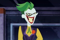 They met up at S.T.A.R. Labs, bound Dr. Francine Langstrom as a decoy, and stole an explosive called the Fractal Obliterator. Upon making their exit, they encountered Wonder Woman and Batgirl. The Joker stepped out and remarked they were the "playmates" Harley told him all about. Batgirl was excited at first then channeled Batman. Joker admitted he didn't speak "Bat" even after all this time. Wonder Woman had enough and told him to prepare for battle. He sat on the rail back-to-back with Harley and told them he got anxious around new people and liked to have an out prepared in case a conversation hit an awkward low. He presented a remote control decorated in a clown motif. The doors of a room slid open and revealed Langstrom. She tried to tell them something. Joker mused goodbyes were hard and imitated Batman. Batgirl realized Joker was the one who called her emergency line. He quipped he could speak "Bat" after all. Harley marveled at his talent and they left in a blimp in his image.