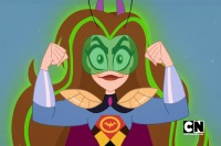 Krinsky didn't take kindly to her words and proclaimed she wouldn't let go until she had Zatara's beauty, popularity, and friends. Krinsky's skin crystallized then in a flash, she looked exactly like Zee Zatara. Zatara tried to cast but her magic was gone. Krinsky was confused then realized she stole Zatara's magical powers, too. She cast and hit Zatara with a blast that made her look like Krinsky. Krinsky walked outside to the girls and they were unaware of what happened. Zatara tried to warn them but the girls only saw Krinsky and realized Zatara was right about her weird obsession. The girls went to Sweet Justice after school. As everyone ate, Krinsky took everything in. Cruz asked if something was wrong. Krinsky remarked she couldn't see how life could get any better. Danvers believed hot sauce would make it better. Gordon triggered the dispenser and they headed downstairs to their base. While Cruz used a hand construct to pour some hot sauce on Danvers' dish, Krinsky realized they were all of the Super Hero Girls. She gleefully activated her ability and stole everyone's. She took on aspects of everyone's costume into her form and stole all their powers then flew up through the street above and declared herself Mega Casey Krinsky. Civilians ran for it.