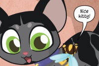 Mr. Whiskers is a black kitten owned by the Beecher family in Metropolis. During a city-wide power outage, Bumblebee was stuck in her tiny form and made it home on a toy car. Mr. Whiskers was outside the house and batted at the car. Bumblebee jumped on his back and he sprang up a tree and into her bedroom window.