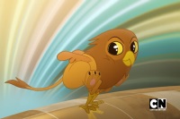 Prince bid all the pet owners good bye and hoped to see them the next day. Steve dragged her in the opposite direction. The night after failed obedience lessons, Prince tucked Steve into her bed and assured him they would try again the next day and adjust to the world of man. The next morning, Steve was adult sized and pushed Prince out of the bed by mistake. Prince chuckled at the sight of him and considered limiting his ice cream consumption. She noticed he now had wings and wondered if he could fly. He charged through her wall and flew away. She exited the apartment as Wonder Woman and ran towards Steve, commanding him in vain to stop. Steve devoured a Frozen Pops stand and a girl's popsicle. Wonder Woman nervously told them he was a playful scamp. She yelled at him to heel. Steve the Griffin flew to the Metropolis Pier and attacked stuffed animals at a prize booth. Wonder Woman ordered him not to do it. It was too late and he smashed the booth to pieces. He was annoyed it wasn't a real animal and snatched a caught marlin that Jimmy Olsen was trying to take a picture of.