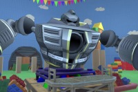 The Toyman Robot is a giant robot built by Toyman after his giant robot was defeated by Supergirl at Hob's Bay. After another Hob's Bay restoration project ceremony was crashed by Toyman's toy army, the Super Hero Girls decided to return to Old City and look for clues underground. They ran into Catwoman, who was looking for something to steal, near the northwest sector. They entered a room where the prototype Toyman Robot was being built. Toyman found them all so irritating. They recognized his voice from the battle with the giant robot. Toyman felt this robot had more potential and decided to use the girls as live targets for a performance test. The generators in the room activated and force fields formed around the girls and the robot. While contending with toy robots like Tina, Catwoman destroyed each generator. More toys like the bears George and William, soldiers like Chris, and dolls like Joliet attacked in waves in conjunction with the robot throwing objects. When Toyman tried to use the missle launcher in the chest, the girls attacked it to cause an overload then damaged the robot while it was temporarily down.